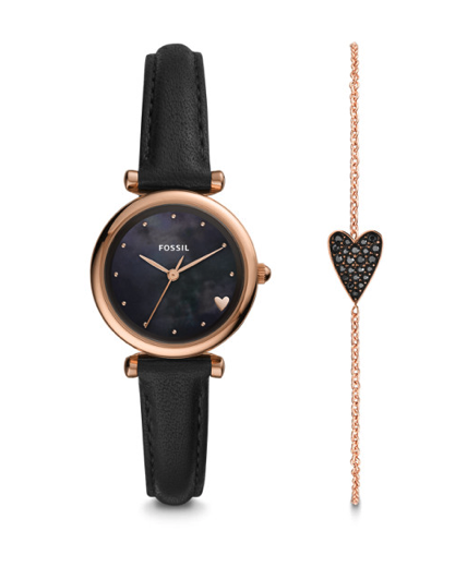 1.Fossil : Coffret montre Mini Carlie et bracelet Réf : ES4506SETP