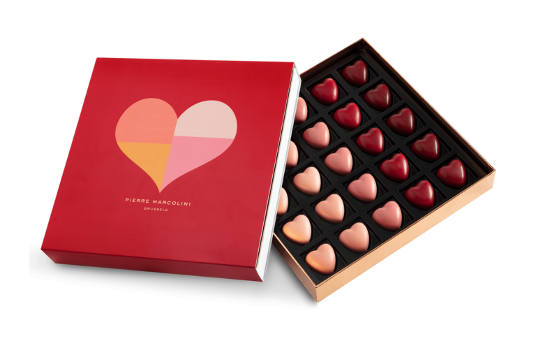 1.Pierre Marcolini : Coffret de 25 Coeurs Saint-Valentin en chocolat