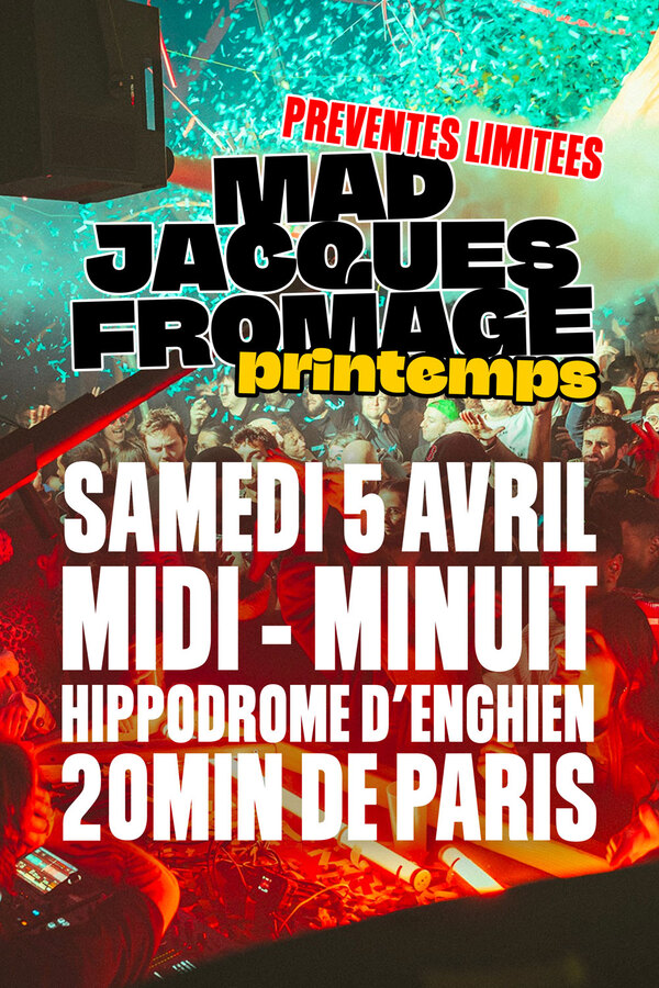Si vous êtes du genre à hésiter entre une soirée électro et une bonne raclette entre amis, ne cherchez plus : le festival Mad Jacques Fromage – édition Printemps a tout compris ! Le 5 avril 2025, l’hippodrome d’Enghien-les-Bains se transforme en un véritable temple de l’électro et du fromage fondu pour une expérience à la fois insolite et festive.